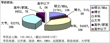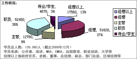 在现实的工作与生活环境中,很多朋友希望能找到自己的心爱和知己,希望找到志同道合的事业伙伴,希望找到……虽然有很多“交友中心网站”给我们提供了一个交流的平台,但很多希望者却遭遇上当受骗,或者未能如愿……原因是在虚拟网络世界里,其会员注册资料基本上不够真实,又得不到法律的保障。 对不起,只有MBA在线(环球56在线)的VIP会员才能免费享受各种服务!现在申请VIP会员>>> MBA在线/环球56在线(原刘老师MBA在线)注册会员和学员情况 刘老师MBA在线于2006年7月8日注册会员突破26万! 学员情况(全部为刘老师的学员):